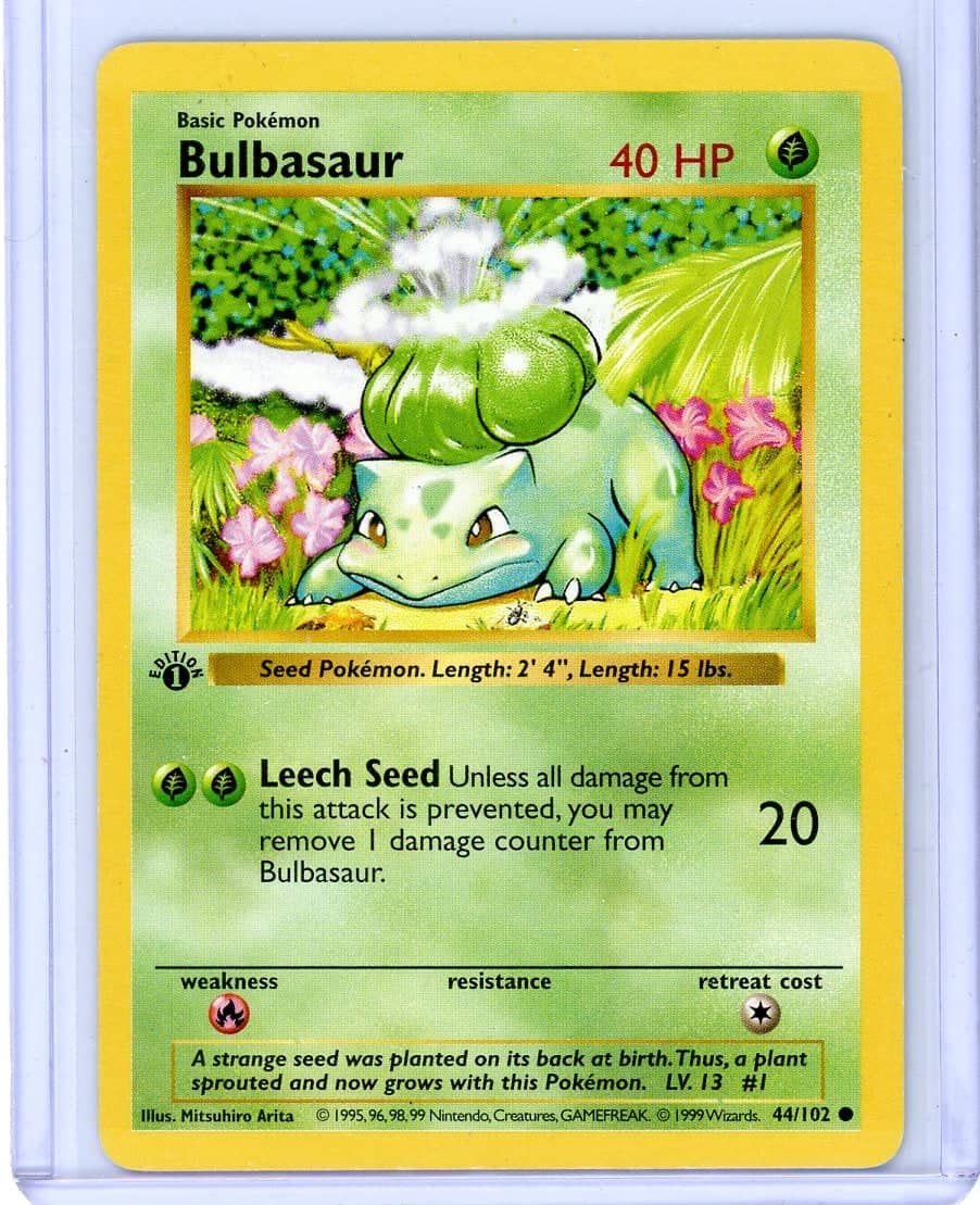 Bulbasaur 1999 Pokemon Base Set 1st Edition Shadowless #44/102 – Official Pokemon TCG Product