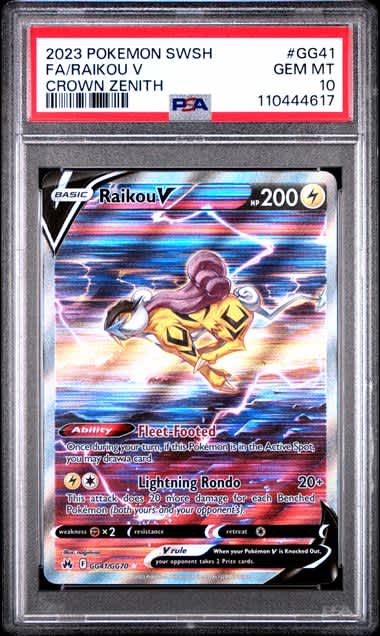 Raikou V Pokemon Crown Zenith Galarian Gallery #GG41/GG70 PSA 10 – Official Pokemon TCG Product
