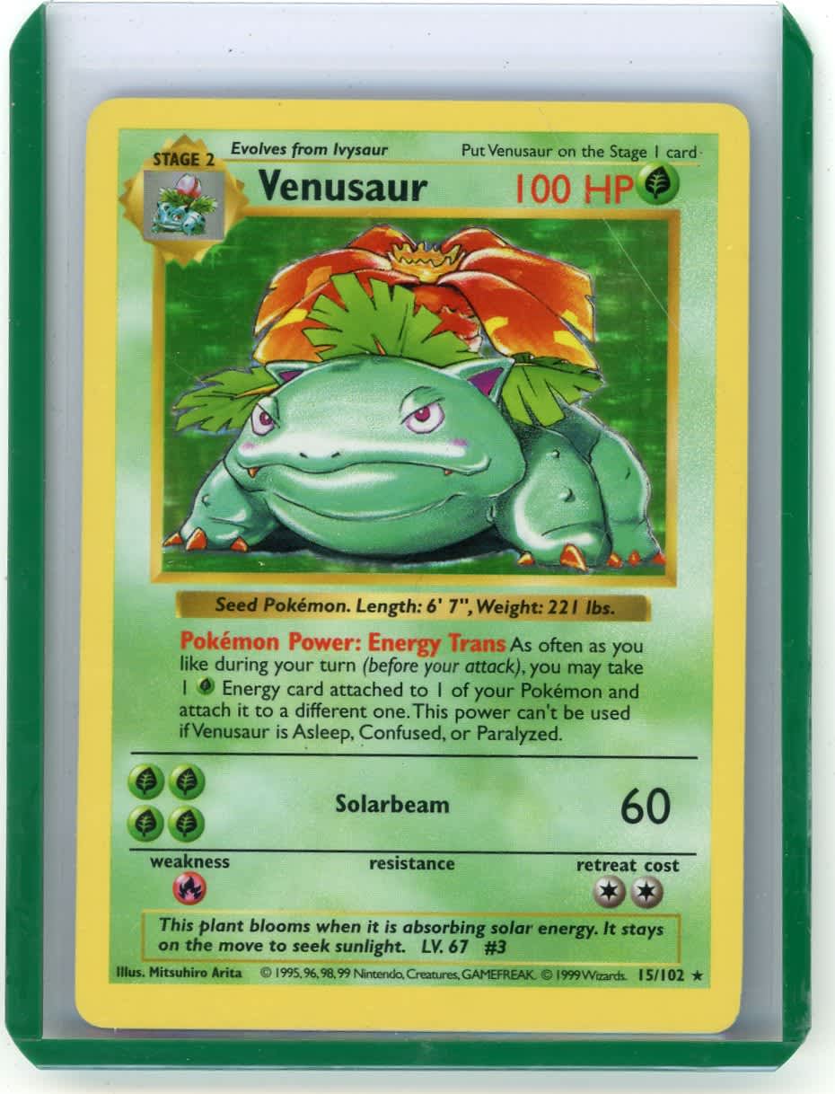 Venusaur 1999 Pokemon Base Set Shadowless Holo #15/102 – Official Pokemon TCG Product